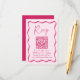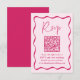 Modern Pink Wavy Frame QR Code Wedding RSVP Enclosure Card