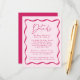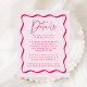 Complete your wedding suite with our Modern Pink Wavy Frame wedding details card. Featuring the same retro design as our invitation collection, this card features a dark pink wavy frame border surrounding your important wedding details such as wedding venue details, hotel accommodations, directions, and wedding website on a light pink background.