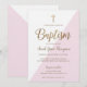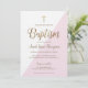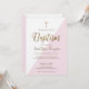 Modern Pink White Gold cross Baby Girl Baptism Invitation