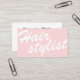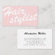 Modern pink white minimal bold script hairstylist business card