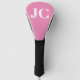 Cute, modern, minimalistic, simple, elegant, pink white typography, monogram Initials, feminine, girly custom golf head cover for golf lover golf gals. Personalise this cool and classic initials logo design for lady golfers.