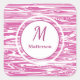 Modern Pink White Pattern Monogram Custom Square Sticker