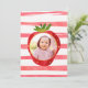 Modern Pink White Strawberry Custom Birthday Photo Invitation