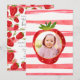 Looking for custom birthday invitations with photo? Look at our Modern Pink White Strawberry Custom Birthday Photo Invitation! It features digital hand-drawn watercolor of pink, red strawberries, pink and white stripes, white flowers, and leaves. Perfect for a strawberry 1st birthday party, setting the tone for a joyful and colourful day. Beautiful red strawberry 1st birthday invite!
