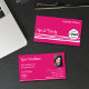 YOUR FAVORITE - Make a lasting impression with this modern and simply business card design featuring stylish white stripes on a plain pink background with logo and (employees-) photo.