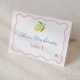 Modern pink yellow wavy line citrus place card for wedding or sit down event. This design is sold as a 3.5x5 inches flat card that you will need to fold (or score and fold) in half yourself to make individual place cards or buffet cards with a folded size of 3.5x2.5 inches.