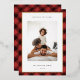 Share holiday greetings with these photo Christmas cards featuring your favourite photo set on a hand drawn buffalo plaid pattern in red and black trimmed with gold foil. An editable message area lets you customise your holiday greeting in modern lettering. Add your family name or names beneath.