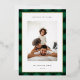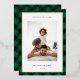 Share holiday greetings with these photo Christmas cards featuring your favourite photo set on a hand drawn buffalo plaid pattern in hunter green and black trimmed with gold foil. An editable message area lets you customise your holiday greeting in modern lettering. Add your family name or names beneath.