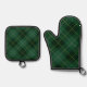Modern Green Plaid Pattern Oven Mitt & Pot Holder Set