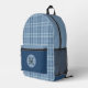 Add a timeless style to your wardrobe accessories with the Modern Plaid Sky Blue Printed Backpack. Personalise with your initials or text.