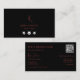 Modern Plain Black with Monogram QRCode & Diamonds Business Card