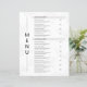 Modern Botanical Plant Leaf Pattern Black & White Restaurant Menu.