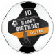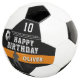 Modern Player Silhouette Happy Birthday Soccer Ball. Celebrate in style with this sleek soccer, football design! Featuring black and orange colour scheme, bold lettering, realistic soccer graphics, this sporty design is perfect for any soccer fan. The design showcases dynamic player silhouettes, a soccer image and stripe details. Whether for a kid or an adult soccer lover, this premium and customisable design is a home run for any birthday celebration!