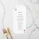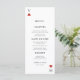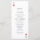 A modern playing card wedding menu inspired by classic Vegas casino style. Clean lines, bold graphic elements, and refined typography create a striking look perfect for destination weddings, themed receptions, or lively casino-inspired celebrations. The layout keeps each course clear and elegant while adding a fun, memorable touch to your tablescape. Ideal for couples wanting a stylish, contemporary Vegas aesthetic.