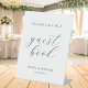 Wedding please sign our guest book sign featuring modern minimalist typography in black and white colour.