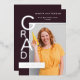 Designed to showcase your graduate’s photo and achievements, the layout balances strong graphic elements with clean typography, creating a refined statement that feels both confident and timeless. The plum noir tone offers a striking alternative to traditional graduation colors, making this design especially appealing for those drawn to modern, editorial-inspired aesthetics.