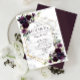 Modern and trendy, this wedding invitation design features a faux gold geometric embellished with watercolor eucalyptus greenery and plum purple floral arrangements, on a faux Carrera marble background. The couple's names and some wedding details are in a matching burgundy colour. The back of the card features a beautiful plum purple texture. Contact designer for matching products or design variations. Thank you sooo much for supporting our small business, we really appreciate it!