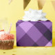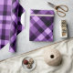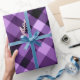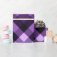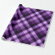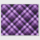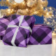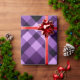 A roll of wrapping paper featuring a beautiful diagonal plaid pattern design in plum purple.