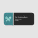 Modern plumber service theme name tags template designed with a plumbing tools symbol, teal white and black designer colour combination and simple layout you can customise online for a handyman, Plumber, or home repairman.