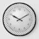 Fresh modern style wall clock in classic black and white polka dots pattern and clean crisp numbers and black border, from the Wall Art Shoppe.