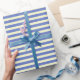 Crafted with care, this blue gift wrapping paper pairs beautifully with green Christmas wrapping paper and plaid designs, adding a touch of retro aesthetic to your presents. Whether you're wrapping gifts for a holiday party or a simple gathering, our stripe wrapping paper is sure to impress.