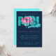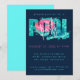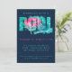 Throwing a tropical pool party and looking for an appropriate invitation? Look no further! This modern, cool and trendy design features text art with a greenish-blue swimming pool, a hot pink float, and modern typography with water splashes on a midnight blue background is perfect for your pool party. Simply add your party details to the card and get ready to party!
