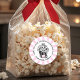 Modern graphic favour sticker with line art bag of popcorn, Hope you have a poppin' Valentine's Day in black modern font.
