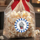 Modern graphic favour sticker with line art bag of popcorn, Hope you have a poppin' Valentine's Day in black modern font.