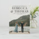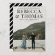 This modern photo save the date sets a stylish tone for your upcoming wedding. This product allows couples to showcase a full bleed portrait or vertical photo, customise their names and event details. The wedding website can be changed to suite your needs like adding the phrase "formal invite to follow" if preferred.