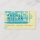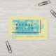 Modern business card with a unique poster-esque design, colourful duotone in blue and yellow. Featuring different threads. Suitable business card for the tailor, seamstress, or diy home made goods.
