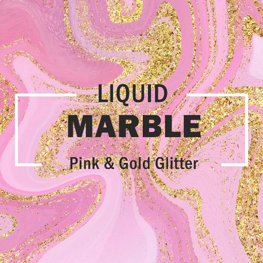 Chic, glam and elegant professional pink liquid and gold glitter marble with a partly white frame for your text.