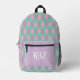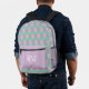 This modern preppy style lavender, pink and green argyle and stripes backpack features coordinating patterns and monogrammed initials. It's a traditional patterned design with a pretty and girly update that would be cute for a girl to carry her school or sports gear. Grab one for back to school time, or as a feminine addition for her to use for travel, camping, hiking, or anywhere you'd need to carry supplies. Great for kids, tweens, a teen girl, or adults.