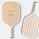 Modern pickleball paddle with custom monogram and name in pretty feminine design in pastel colours, with trendy striped detail
