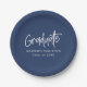 Add a special touch to your graduation party with personalised graduation paper plates! The paper plates display "Graduate" in a white handwritten script with a navy background or colour of your choice. Personalise the navy graduation plates by adding the graduate's name and graduation year.