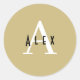 Modern Preppy Tan Monogram Name + Initial Classic Round Sticker