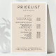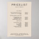 Modern, price list poster. Edit your product in a few minutes by adding your data. You can change the font/colour/position by "further personalisation".