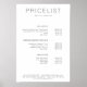 Modern, price list poster. Edit your product in a few minutes by adding your data. You can change the font/colour/position by "further personalisation".