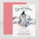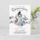 This stylish quince anos | Quinceañera party invitation has a modern vintage design featuring watercolor girl silhouette with a a pink and blue festive princess dress on a simple white background and a retro vintage ornament.