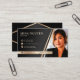 Advertise your services with this professional modern black & beige real estate agent business card with customisable photo. Personalise to your liking.