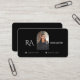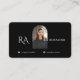 modern and professional plain black and white business card with your photo within a curved shape photo, monogrammed initials and socialmedia icons for a special look for careers in which appearance is needed, design fits any profession, makeup artist, hair stylist, beautician, cosmetologist, wedding planner, lawyer, accountant, consultant, graphic designer, etc