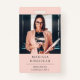 This business badge features a photo title and name, suitable for many professional titles like consultant, content developer, editor, sales consultant, etc. The reverse side features the contact info, social media, and QR code. Replace this sample place holder photo with your own photo. A peach pink background on the front and back of the badge.