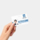 A modern staff ID badge with a professional layout, ideal as employee ID and office worker identification. The design includes an employee photo, as well as the employees name, job title and employee ID number. Furthermore it features a space in the upper right area of the badge to add your business logo and company name.