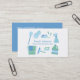 A modern and professional business card with illustrations to surround the business name. They include cleaning supplies such as gloves, detergent, spray bottle, toilet brush, scrub brush, pail and cloth, squeegee, iron and clothes pegs. Colour palette of blue and green which communicates a sense of freshness and cleanliness. Perfect for those in the house cleaning services! Personalise easily with your business details in the text templates provided.