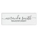 This name tag features name in black modern script font style and title in black modern sans serif font style on white background.