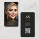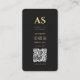 Professional Marketing Vertical Photo Black Gold QR Code Business Card with your full photo and elegant monogram.