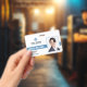 A modern staff badge with a professional layout. Ideal as an employee ID for your business or workplace. Add your employee's photograph, name and occupation. Optional information such as a badge ID number or expiry date can be included or left blank. Remember to add your logo, business name and tag line.