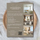 Promote your brand with this sleek and customisable professional flyer, designed to make a lasting impression. Upload 3 personal or portfolio photos, add your custom text or list of services, and include your contact details to help clients reach you easily. A scannable QR code links directly to your consultation booking page, social media, website, or any custom URL — making it easier than ever to connect. Ideal for interior designers, personal stylists, coaches, realtors, beauty pros, and other service-based professionals who want a polished and modern marketing tool.