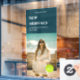 A simple custom business ads window cling in a modern minimalist style that can be easily updated with your company name, a photo, a sale slogan, and custom details. The perfect solution for any business to promote your new product and services.