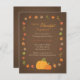 Let's be thankful together! Invite your guests over for a thanksgiving dinner party with this modern, elegant and stylish autumn themed invitation. Design comes with a dark brown background with a border of autumn and fall leaves in various colours and shapes. It also includes vines, acorns and pumpkins. Colour palette of orange, brown and green adds to the rustic charm. Personalise easily with your party details.