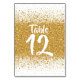 An elegant wedding table card number with a sprinkled gold confetti effect on a white background. A striking design for your special day. Also available are matching wedding place cards menu and invitation. The font's style, colour and placement can also be changed any way you like.